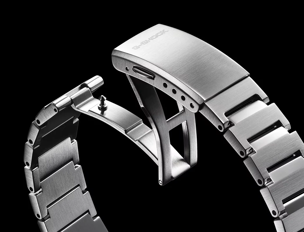 Bezel och boett är utformade för ett rent uttryck utan logotypsintryck, vilket ger klockan ett skarpt och modernt formspråk. Tre olika ytbehandlingar – vertikal borstning, cirkulär borstning och spegelpolering – skapar en levande och sofistikerad känsla som förändras med ljuset. Armbandet i massivt rostfritt stål förstärker intrycket av kvalitet och hållbarhet, samtidigt som den platta designen gör klockan bekväm att bära hela dagen.