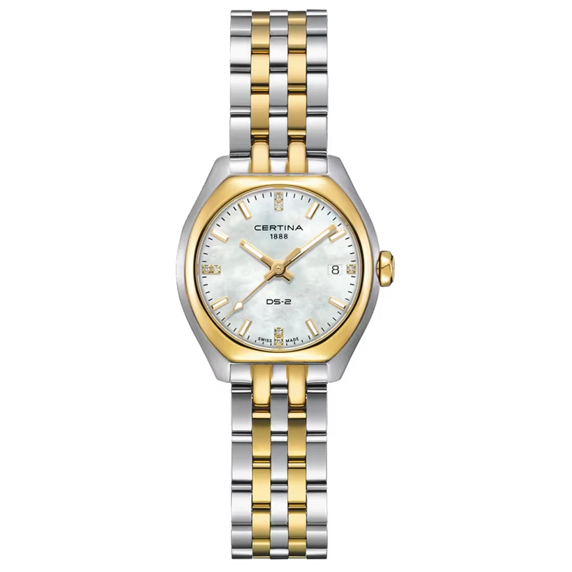 Låt Certinas DS-2 klocka pryda din handled med sin förfinade urtavla där du kan välja mellan en subtil silver och intensiva färger. En högkvalitativ klocka där Precidrive™-kvartskalibern gör dig för redo för action med sitt pålitliga och exakta urverk. Hitta din nya moderiktiga följeslagare hos Klockmaster.