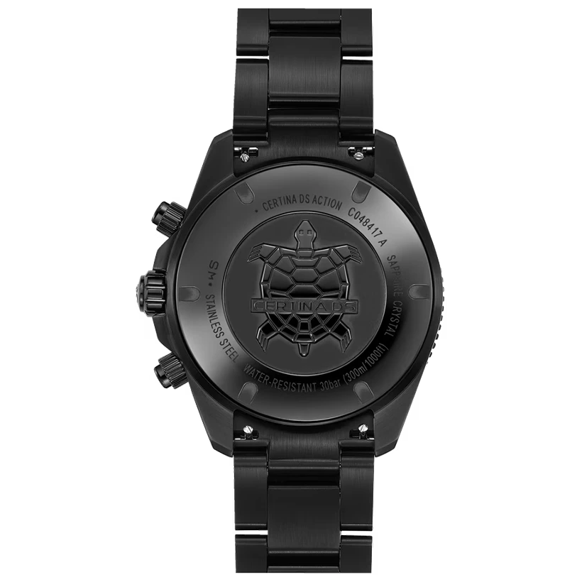 DS Action Chrono är en sportig herrklocka byggd för män som vill ha prestanda, kraft och pålitlighet i alla lägen. Med sin svarta karbonlook, PVD‑behandlade ytor och robusta konstruktion i rostfritt stål 316L är den skapad för intensiv användning både på land och till havs. Den tydliga, energiska designen matchas av ett kvartsverk med hög precision, vilket gör klockan till ett självklart val för dig som söker en vattentät sportklocka för herr som tål hårda förhållanden.