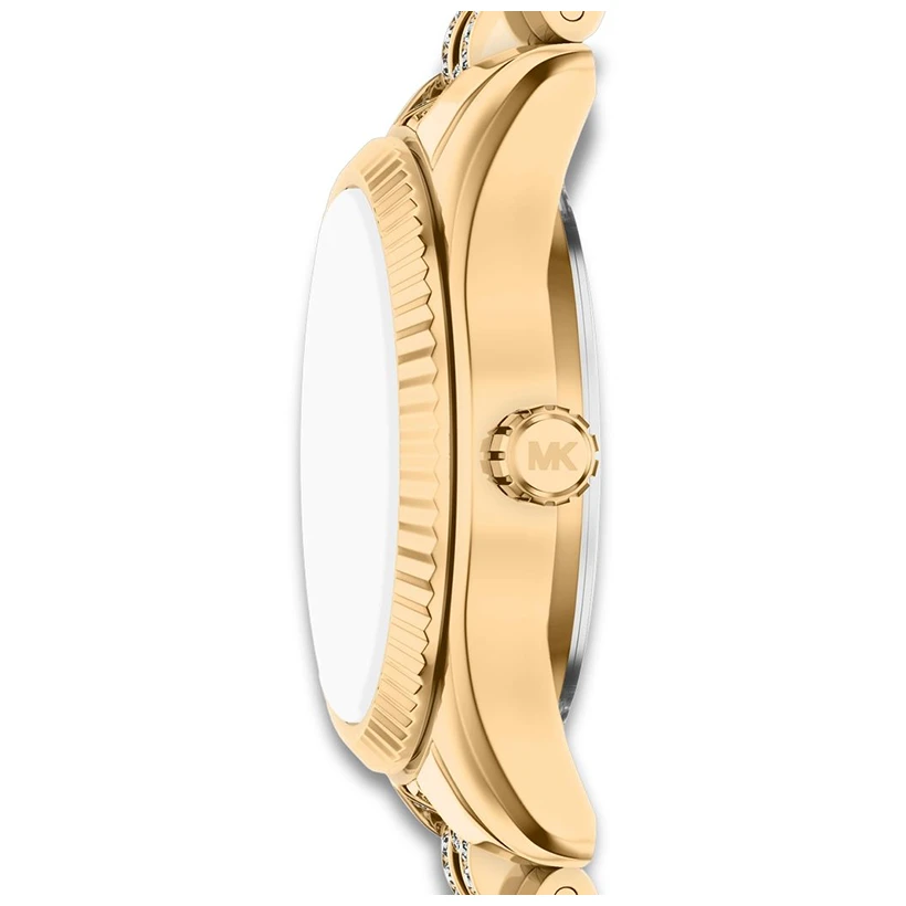 Lexington-klockan får en ny tolkning med maximal lyster och exklusiv elegans. Den ikoniska modellen är täckt av gnistrande pavékristaller och tillverkad i guldfärgat rostfritt stål för ett lyxigt uttryck. Den runda urtavlan och det matchande armbandet är rikt dekorerade med pavéinfattning som skapar en glittrande och iögonfallande design. Bär klockan för att ge både vardags- och kvällslooks en extra dos glamour och sofistikerad stil.