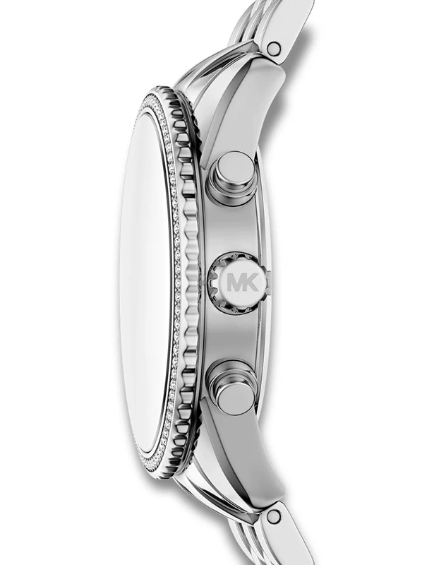 Bryant-klockan kombinerar silverfärgat rostfritt stål med ett armband i länkar inspirerat av klassiska herrklockor, vilket ger en elegant och tidlös finish. Kronograffunktionen tillför praktisk funktionalitet, medan den gröna urtavlan och den nitarprydda bezeln skapar ett uttryck av glans och sofistikerad stil.