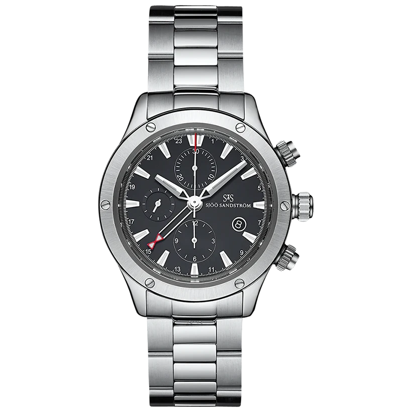 Sjöö Sandström UTC Extreme är skapad för dig som rör dig obehindrat mellan extrema miljöer och urban vardag. En kraftfull automatisk kronograf med industriell karaktär, utvecklad för äventyrare som kräver funktionalitet, tydlighet och robust svensk design i ett och samma instrument.