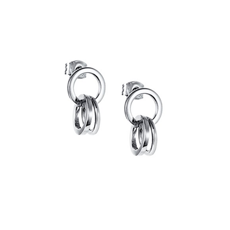 Örhängen i återvunnet silver med 2 rörliga ringar.