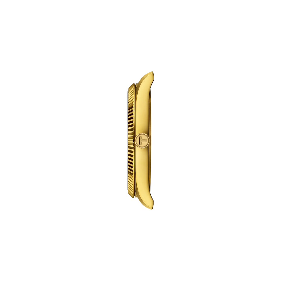 Denna TISSOT Ballade 40mm T1564103305100 klocka är utformad för att lyfta din stil för de där verkligt speciella stunderna. Den traditionella guillocherade urtavlan med solstrålar reflekterar ljuset vackert, vilket ger djup och elegans. Den räfflade bezelringen erbjuder en sofistikerad dekoration som representerar traditionellt urmakarhantverk. Det utbytbara armbandet med snabbkoppling ger maximal mångsidighet, så att du enkelt kan ändra din look.